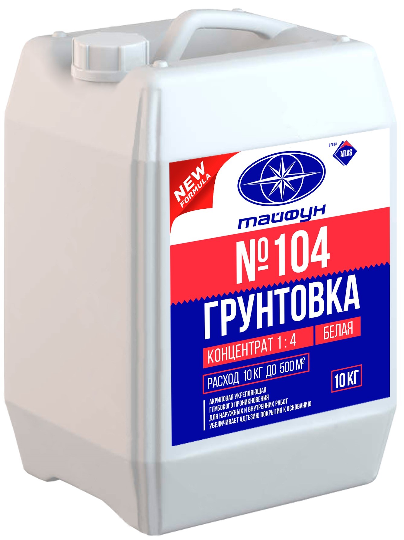Грунтовка ТАЙФУН Мастер №104 концентрат 10 кг применяется для уменьшения водопоглощения основания пористых и непрочных минеральных оснований. Улучшает адгезию последующего отделочного слоя. Поверхностно упрочняет основание. Предназначена для производства работ внутри и снаружи помещений. Для подготовки поверхностей, для устройства отделочных покрытий (керамическая плитка, керамогранит, штукатурка, шпатлевка, лакокрасочное покрытие, обои и т. д.).