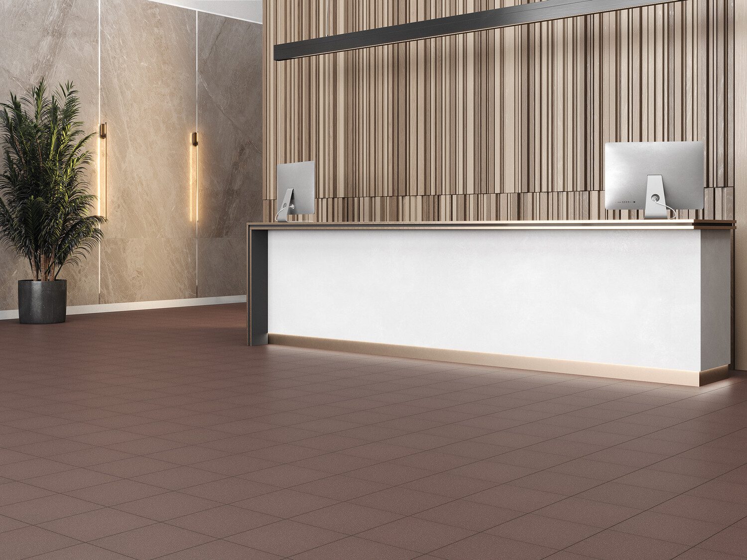 Керамогранит для пола 298×298 мм MITO Gres B 100 коричневый – универсальный керамогранит с матовой гладкой поверхностью для внутренней и наружной облицовки с текстурой соль-перец и идеально подходит для оформления пространства пола кухни, террасы, холла или балкона.