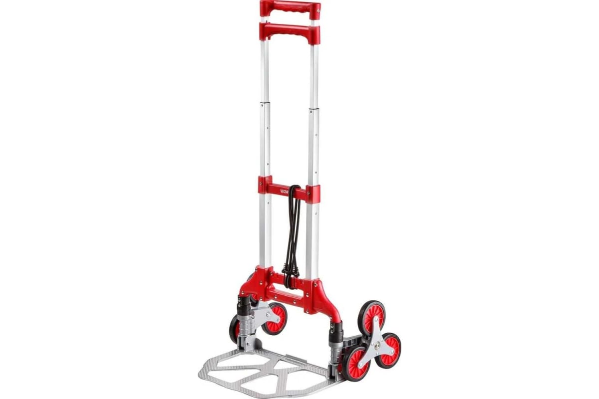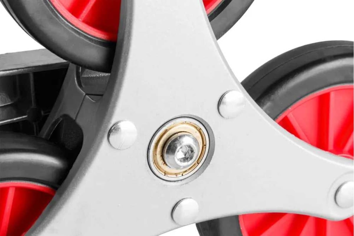 Тележка складная WORTEX FT 1080-6 (1323380) отличается высокой прочностью, надежными соединениями и максимальной грузоподъемностью в 80 кг. Идеально подойдет как для ровных поверхностей, так и для ступеней, за счет наличия 6 прочных обрезиненных колес, установленных на подшипниках.