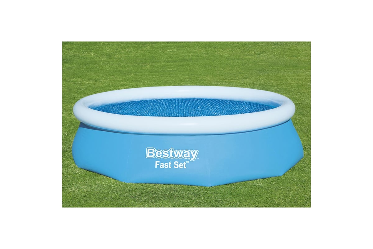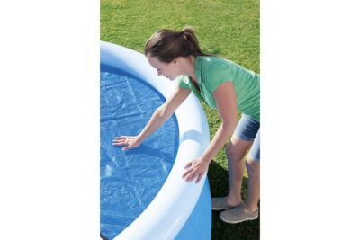 Тент-чехол с обогревающим эффектом BESTWAY для бассейнов 305 см (58241) разработан специально для того, чтобы сохранять тепло воды в бассейнах. Представлено в виде специализированной пленки особой структуры. Верхний слой данной пленки обладают повышенными параметрами прочности и выносливости, что обеспечивает защиту от загрязнения и воздействия окружающей среды. При этом солнечные лучи спокойно проникают через пленку и осуществляют нагрев воды. С внешней стороны совершенно иная структура пленки, которая обеспечивает сохранность накопленного тепла. Диаметр тента: 289 см.