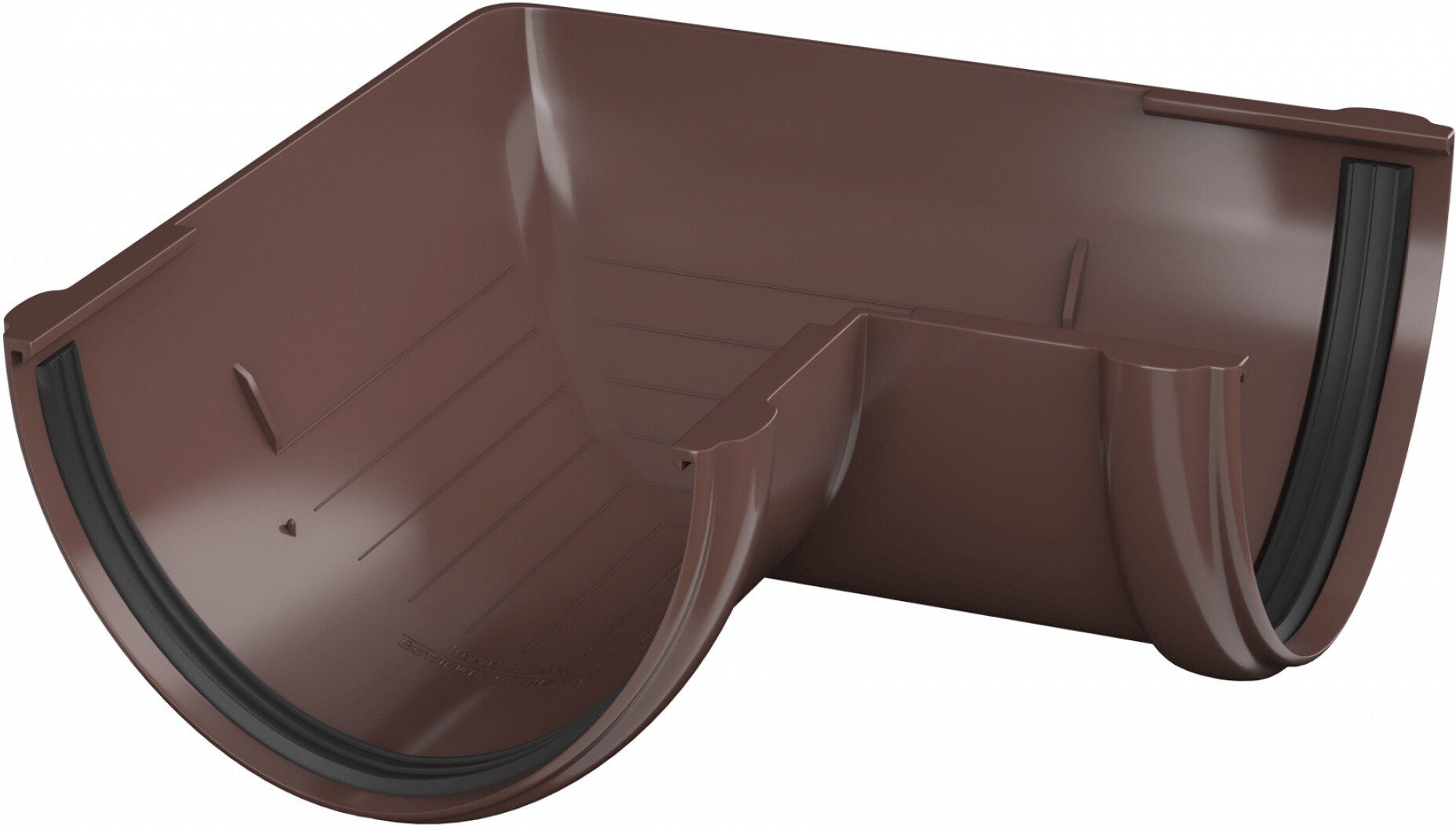 Угол желоба 90° ПВХ ТЕХНОНИКОЛЬ 125 мм коричневый (359460) используется для изменения направления потока воды, монтируется на внешних и внутренних углах кровли.