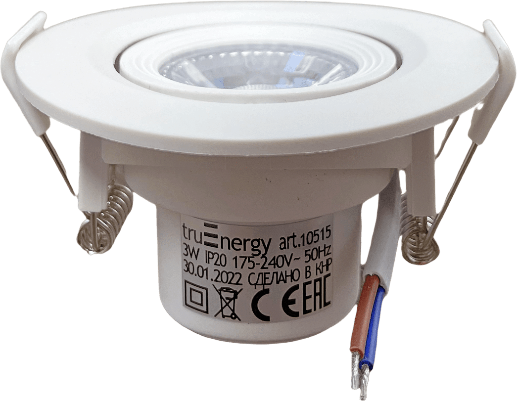 Точечный светильник светодиодный 3 Вт TRUENERGY Spot круг белый (10515) поворотный направленного света предназначен для точечного освещения бытовых помещений. Угол рассеивания – 40 градусов. Материал рассеивателя – белый акриловый полимер. Срок службы – 20000 часов. Не создает электромагнитных помех. Высота видимой части светильника – 2,3 мм. Преобразователь напряжения встроен в светильник.