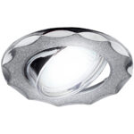 Поворотный светильник ЭРА “звезда со стеклянной крошкой” DK17 CH/SH SL – идеальное решение для вашей комнаты! Светодиодный светильник можно использовать как в качестве главного освещения, так и для создания акцентов в определенных зонах комнаты. Благодаря скрытой части корпуса светильники можно встраивать в потолок или стены, создавая разный функционал помещений. Светильник ЭРА с ярким дизайном подойдет для помещений с разным интерьером: от лофта до модерна, классицизма или минимализма. Благодаря поворотному механизму у Вас появится уникальная возможность направлять свет в разные точки: например, на кухне осветить рабочую зону, а в кабинете место для чтения. Максимальная мощность лампы – 50 Вт. Корпус встраиваемого светильника изготовлен из алюминия, что делает его особенно удобным в использовании. Диаметр отверстия, требуемого для установки светильника составляет 75 мм, а диаметр самого светильника – 85 мм