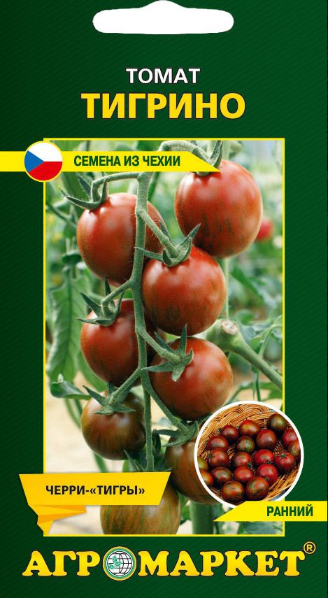 Семена томата Тигрино АГРОМАРКЕТ 10 штук (31453) – это ранний индетерминантный (неограниченного роста) сорт томата-черри. Плоды округлой формы, красно-коричневого цвета с темно-коричневыми полосами, весом 20-25 г. Предназначен для посадки как в открытом грунте, так и в пленочных и остекленных теплицах. Рекомендуется для потребления в свежем виде и для маринования.Посев – февраль-март. Высадка рассады – май-начало июня. Урожай – июль-сентябрь.