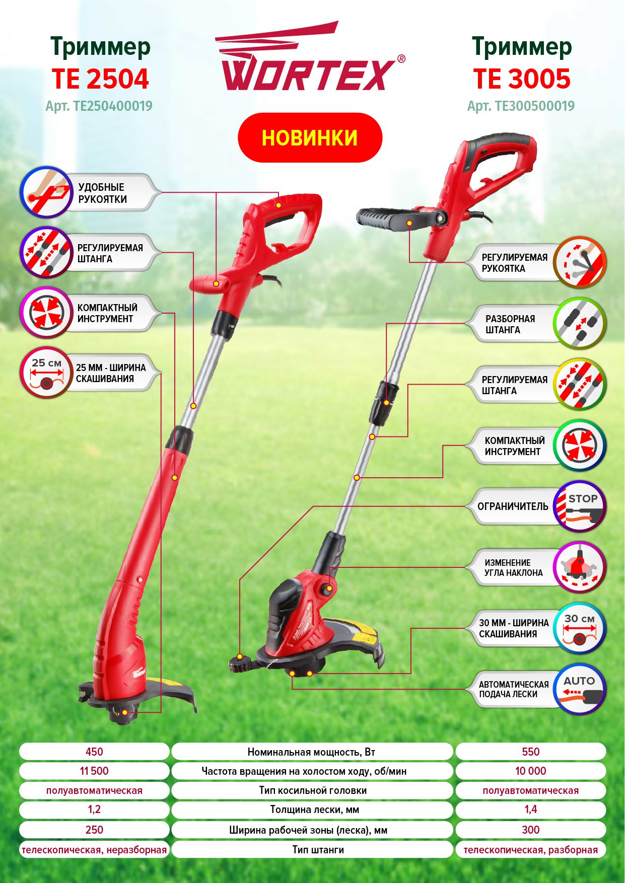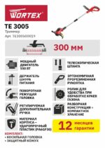 Триммер электрический WORTEX TE 3005 (TE300500019) предназначен для использования на приусадебных участках небольшой и средней площади. Оснащен эргономичной прорезиненной рукояткой, специальным держателем шнура питания, регулируемой штангой. Триммерная головка устанавливается на вал двигателя.
