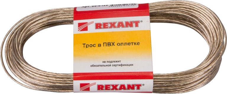 Трос стальной в ПВХ 2 мм прозрачный REXANT 20 м (09-5120) представляет собой латунированный металлотрос 7х7 двойной навивки, покрытый пластикатом ПВХ. Особенность данного троса в навивки, которая заключается в том, что вокруг центральной жилы происходит навивка остальных 6 жил, соответственно конструкция троса 6+1. Данная конструкция имеет преимущество в работе, так как нагрузка на жилы распределена равномерно, что снижает риск разрыва троса при повышенных нагрузках. Покрытие троса устойчиво к воздействию агрессивных сред и солнечному излучению. Рабочий диапазон температур от -40 до +50 С. Трос предназначен для использования при статических нагрузках. Нагрузка на трос металлополимерный не должна превышать разрывное усилие, указанное на этикетке. Запрещается применение троса на грузоподъемных механизмах, лебедках и работах на блоках.