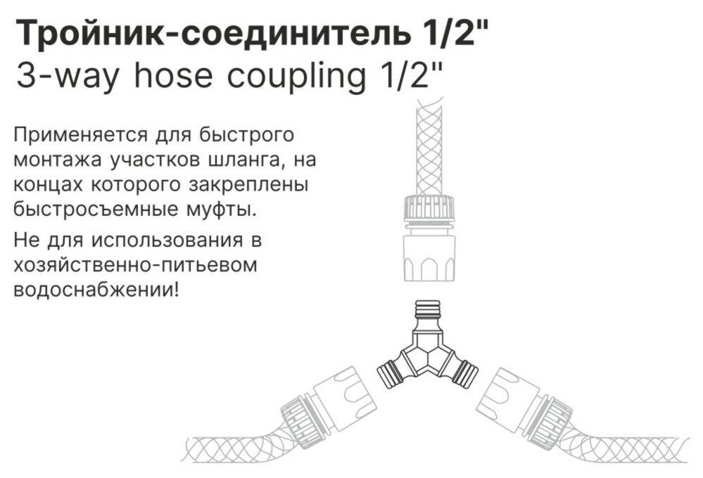 Тройник-соединитель 1/2″ STARTUL GARDEN используется для разделения одного потока воды на 2 разных направления. Крепится к быстросъемным муфтам. Концы муфт, прикрепляемых к тройнику, должны быть одного диаметра : 1/2″.