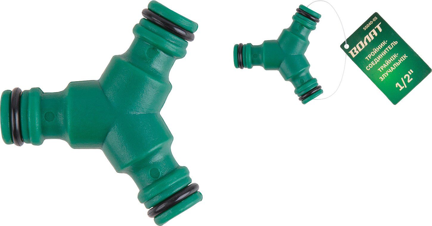 Тройник-соединитель ВОЛАТ 1/2″ (55040-05) используется для разделения одного потока воды на 2 разных направления. Крепится к быстросъемным муфтам.