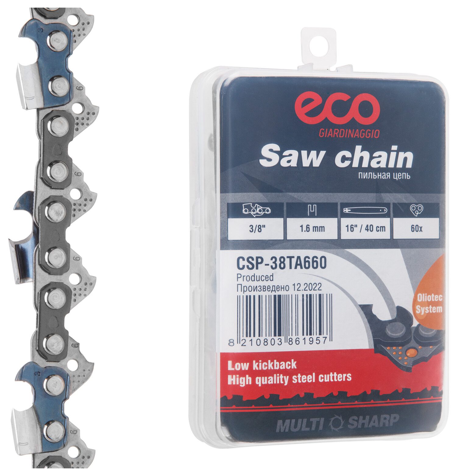 Цепь 40 см 3/8″ 1,6 мм 60 звеньев ECO 38TA (CSP-38TA660) для шин с шириной паза 1,6 мм, которые применяются на цепных пилах STIHL и некоторых других брендов.