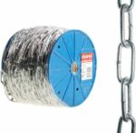 Цепь сварная длиннозвенная оцинкованная DIN 763 STARFIX используется для создания растяжек и подвесок, а также различных такелажных приспособлений не грузового назначения. Длина звена 40 мм. Ширина звена 20 мм. Рабочая нагрузка: 1,6 kH. Разрушающая нагрузка: 10,0 kH. Приблизительный вес: 0,43 кг/м.