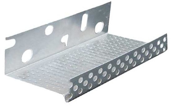 Цокольный профиль необходим для фасада и служит опорой для первого ряда теплоизоляционных плит, а также защищает нижнюю кромку системы утепления от механических повреждений, попадания пыли и пр. Такие планки изготавливаются с перфорацией, что облегчает их крепление к поверхности стен при помощи дюбелей.