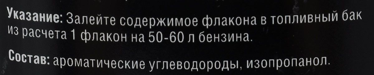 Присадка в бензин влаговытесняющая RUNWAY 300 мл (RW3011) устраняет перебои в работе двигателя, вследствие конденсации влаги в бензобаке и попадания ее в карбюратор. Устраняет детонацию двигателя и улучшает приемистость автомобиля. Предотвращает коррозию, препятствует промерзанию и обледенению топливной системы. Применение: залейте содержимое флакона в топливный бак из расчета 1 флакон на 50-60 л бензина.