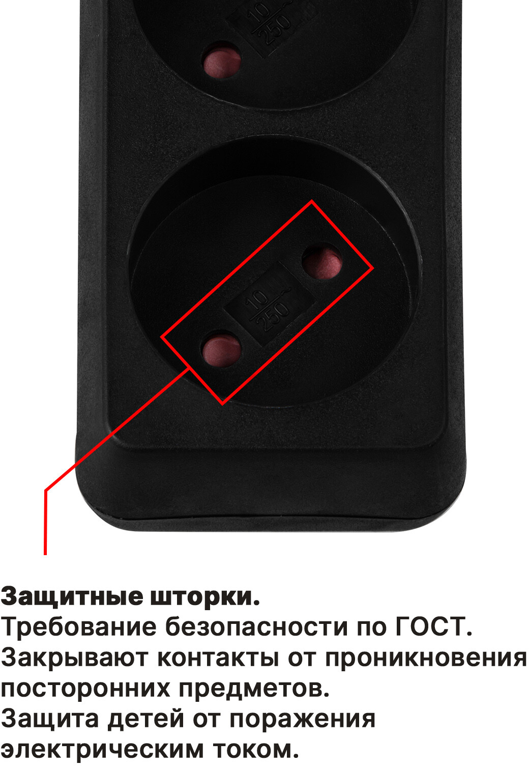 Главная Электрика Удлинители и Разветвители Удлинитель 5м (3 роз., 2,2кВт, б/з, ПВС 2х0,75) черный, Юпитер