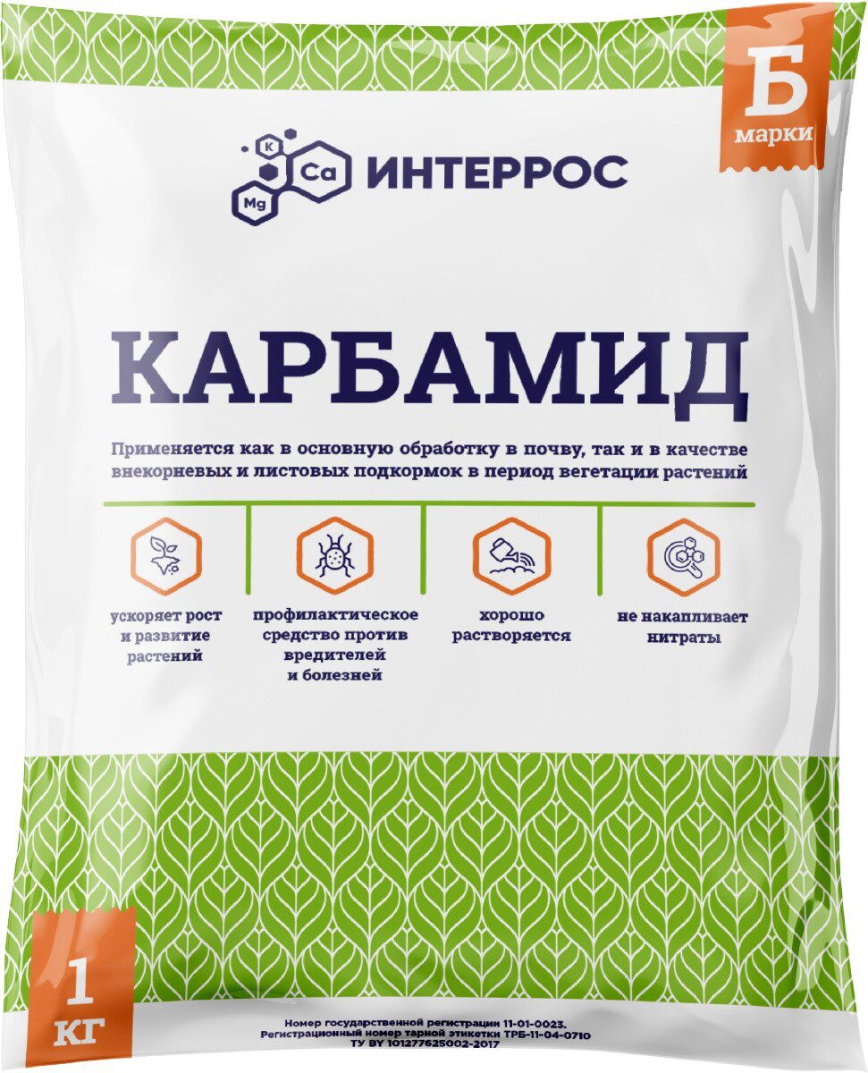 Удобрение минеральное ИНТЕРРОС Карбамид 1 кг используют под все полевые, овощные и садовые культуры. Благодаря высокому содержанию азота (46%), удобрение ускоряет рост растений, а также увеличивает содержание белка в зернах и плодах. Гранулы Карбамида от Интеррос в отличие от аналогов обладают уплотненной оболочкой, не слеживаются, и обеспечивают пролонгированный эффект при внесении в почву в сухом виде – постепенно длительное время растворяются в почве и питают растения.