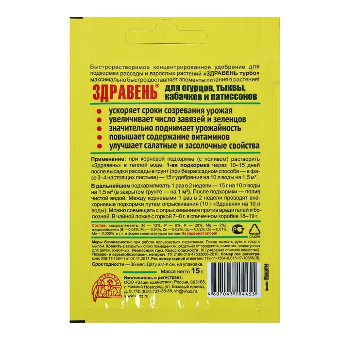 «Здравень турбо для огурцов, тыквы, кабачков и патиссонов»