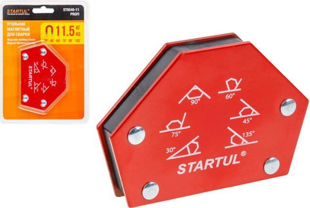 Угольник магнитный для сварки 11,5 кг STARTUL Profi (ST8540-11) предназначен для фиксации металлических деталей при сварке, пайке, сборке конструкций.Возможные углы: 30°, 45°, 60°, 75°, 90°, 135°.