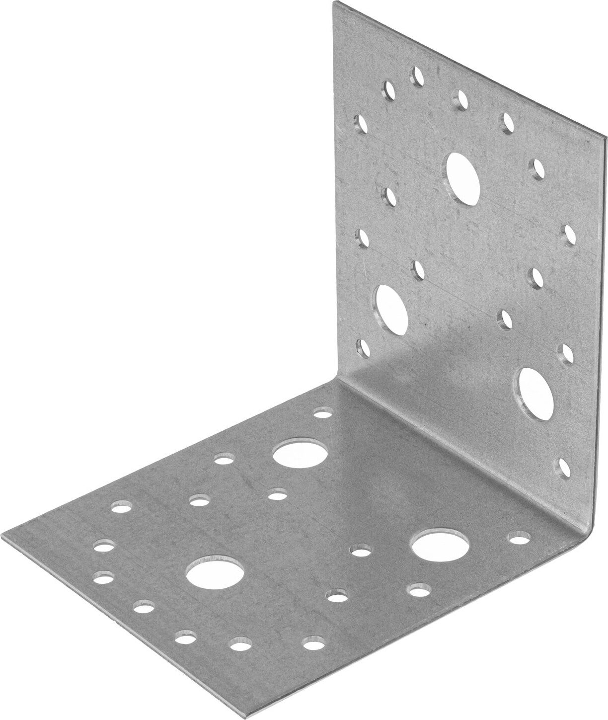 Уголок крепежный 90х100×100 мм KU белый цинк STARFIX (SMP-76210-1) применяется для монтажа легких деревянных конструкций, подсистем из металлопрофиля, элементов отделки, а также вентиляционных систем и даже мебели. Крепление осуществляется гвоздями или шурупами. Цинковая обработка защищает от коррозии. Большие отверстия имеют диаметр 11 или 13 мм (диаметр зависит от размера крепежного уголка), маленькие — 5 мм.