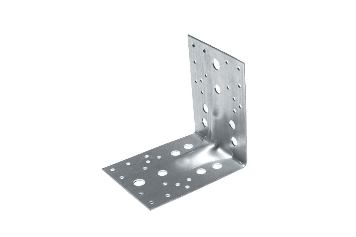 Уголок крепежный усиленный KUU белый цинк STARFIX представляет собой металлическую пластину, согнутую под углом 90 градусов, со сторонами одинаковой длины. Используется для крепления стоек и балок из дерева, крепления деревянных конструкций к бетону при строительстве деревянных домов. Ребро жесткости обеспечивает дополнительную прочность и надежность крепления. Большие отверстия имеют диаметр 11 или 13 мм (диаметр зависит от размера крепежного уголка), маленькие — 5 мм.