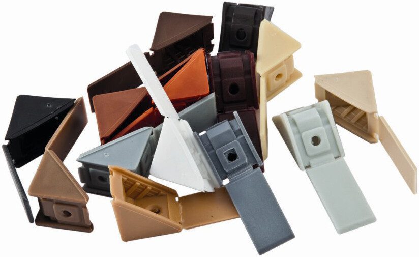 Уголок мебельный пластиковый AKS венге (36278) имеет прикрепленную крышку. Можно подобрать к определенному цвету ДСП. Выполнен в треугольной форме.
