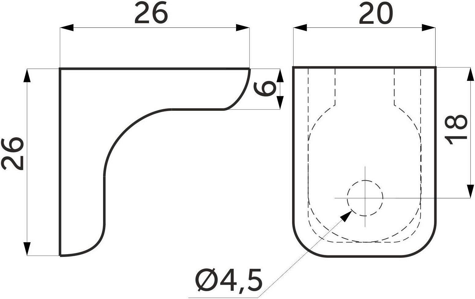 Уголок мебельный 26х26 мм с декоративной накладкой AKS Laguna 10 штук венге (57426) используется для соединения двух полотен под прямым углом. Декорирован пластиковой накладкой, которую можно подобрать в цвет соединяемых деталей.