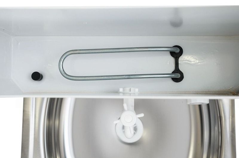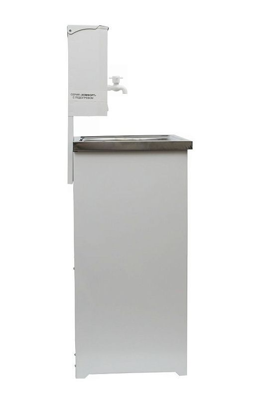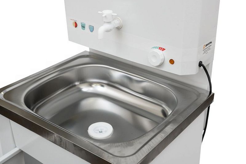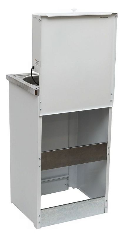 Умывальник дачный с подогревом 14 л ВИХРЬ Комфорт (74/4/6) способен принести комфорт в помещение, не имеющее водопровода. Он выглядит аккуратно, не занимает много места. Такой аппарат ставят в дачных домиках, гаражах, мастерских и других местах, требующих наличия рукомойника. Принцип работы умывальника прост. В верхней части находится емкость, которую наполняют водой. В данной модели есть подогрев, мощность устройства 1,3 кВт, что позволит быстро получить теплую воду, необходимо только подключить умывальник в розетку 220 В. В нижней части за дверкой располагают ведро или присоединяют сливной шланг. Слив воды аккуратно скрыт от посторонних глаз, а помещение с таким умывальником выглядит опрятно. Вода от 20 до 65℃ вода в бачке нагревается не более чем за 40 минут. Кран – шаровый. Мойка из нержавеющей стали, тумба – сталь, бак – оцинкованная сталь.