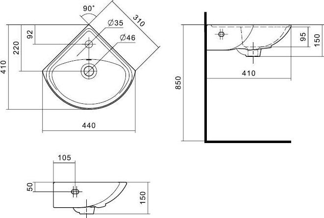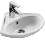 Умывальник SANTEK Ирис 36 (1.WH11.0.514) монтируется в подвесном варианте, под раковиной возможна установка пьедестала, который закроет неэстетичные водопроводные коммуникации и придаст всему интерьеру привлекательность и красоту. Раковина имеет полукруглую форму и несколько отверстий: под смеситель, слив и аварийный перелив. Кроме того, угловая конструкция умывальника Ирис-36 позволит расположить его в углу, что поможет сэкономить пространство маленького помещения.