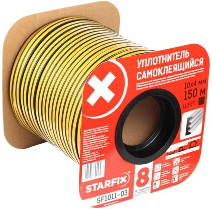 Уплотнитель тип E STARFIX используется в оконных и дверных проемах для устранения зазоров. Позволяет лучше изолировать помещение от окружающей среды (защищает от холода, сквозняков, пыли, шума и других факторов), а также обеспечивает более комфортное закрывание – исключает хлопки и стуки. В сечении профиль соответствует английской букве E. Уплотнитель изготовлен из специальной EPDM-резины на основе синтетического этилен-пропиленового каучука, устойчивого к атмосферным воздействиям и перепадам температур. Клей позволяет надежно прикрепить изделие к раме или дверной коробке.