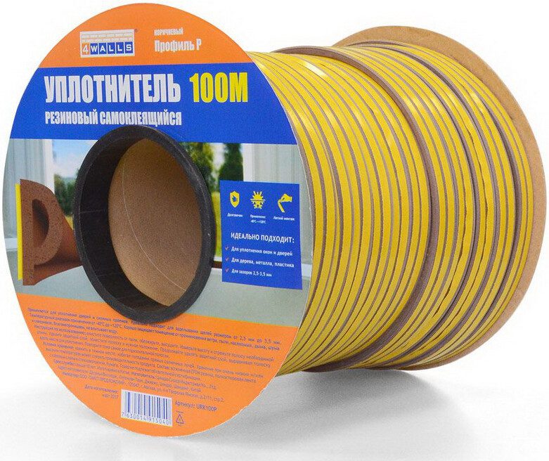 Уплотнитель тип Р коричневый 4WALLS 100 м (URK100P 100 м) изготовлен из вспененной EPDM резины, полиэстеровой ленты с клеевым слоем, армированных внутренних нитей из стекловолокна и защитного лайнера из специальной бумаги. Рекомендуется использовать D профиль для щелей от 2,5 до 3,5 мм. Отличная защита помещения от проникновения ветра, пыли, насекомых, дыма, шума и сквозняков. Уплотнитель подходит для дерева, металла и пластика. Материал: вспененная резина.