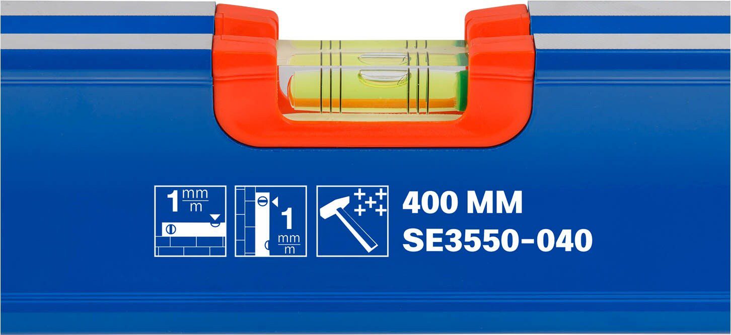 Уровень STARTUL Expert SE3550 400 мм (SE3550-040) длиной 0,4 метра имеет ударопрочный X-профиль, выполнен из алюминия. На корпусе установлены 3 акриловые блочные колбы небьющиеся (1 колба – измерение горизонтали, 2 ватерпаса – измерение вертикали). На концах изделия имеются пластмассовые концевые колпачки. Прорезиненные ручки для более удобного захвата. Надежный и прочный инструмент в помощь, как профессиональному строителю, так и домашнему мастеру.