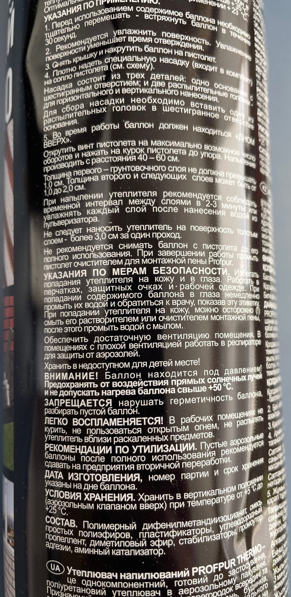 Утеплитель напыляемый PROFPUR Thermo 890 мл (4814016005654) купить в сети строительных магазинов Мастак