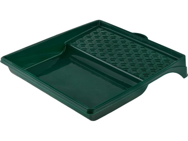 Ванночка малярная пластмассовая ВОЛАТ 330х355 мм (32000-330) предназначена для забора и равномерного распределения лакокрасочного материала по поверхности валика при выполнении малярных работ. Изделие выполнено из ударопрочного пластика, устойчивого к действию растворителей, позволяет использовать большинство ЛКМ. Конструкция двухуровневая – углубление для краски и рифленая площадка для валика. Изделие оснащено ножками для устойчивости и кронштейном для крепления под крюк.