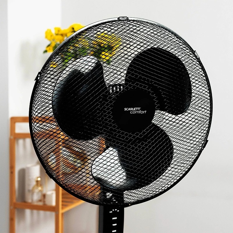 Вентилятор Scarlett SC-SF111RC09 – напольная модель для дома. Мощность мотора равна 40 Вт. Потоки воздуха создают три лопасти. На выбор 3 режима скоростей. Установить время работы на ночь поможет таймер. Управление прибором возможно из любой точки помещения при помощи пульта дистанционного управления. Возможность регулировки высоты, угла наклона и вращения поможет угодить любому пользователю.