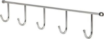 Вешалка настенная на 5 крючков AKS хром (11324) выполнена из стали. 5 крючков для универсального применения. В комплект входит дюбеля и саморезы для крепления.