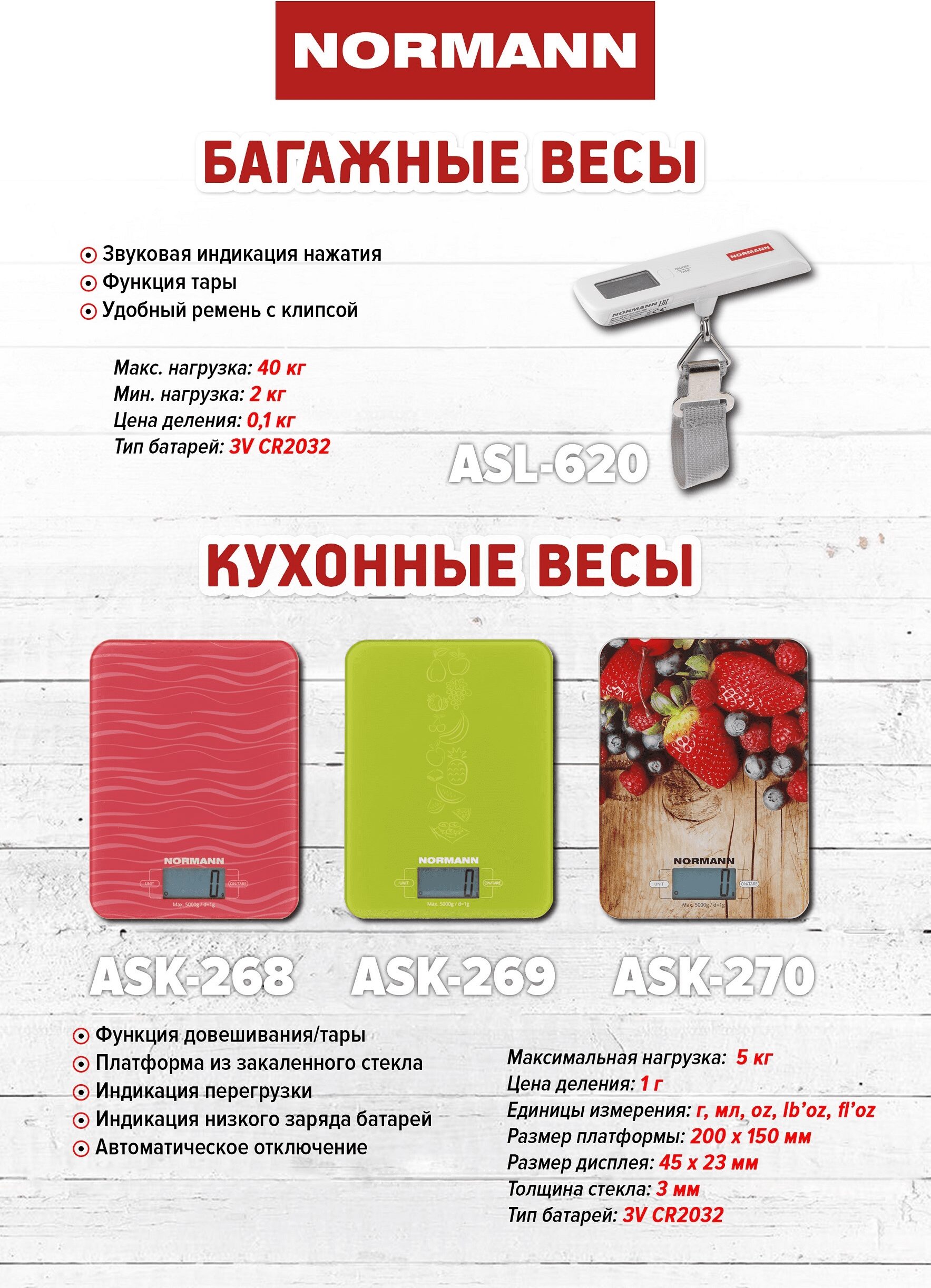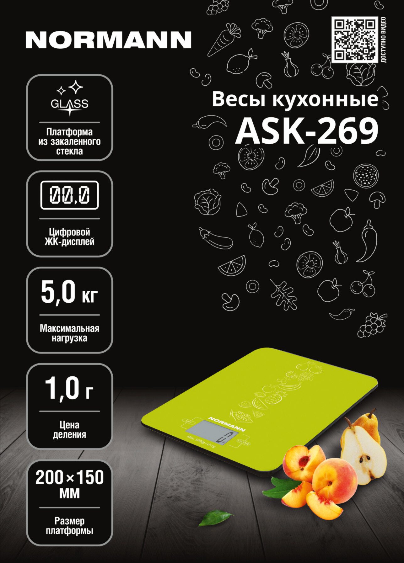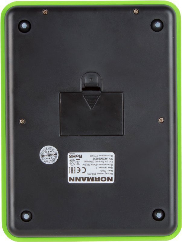Весы кухонные NORMANN ASK-269 серии Super slim series предназначены для бытового использования. Позволяют производить измерения массы продуктов питания и других предметов массой до 5 кг, результат выводится на ЖКИ дисплей. Платформа изготовлена из высококачественного закаленного стекла толщиной 3 мм. Устройство оснащено функцией довешивания/тары, индикацией перегрузки, индикацией низкого заряда батарей, а также автоматическим отключением. Единицы измерения: г, мл, oz, lb’oz, fl’oz’. Работают от батарейки CR2032 (в комплекте).