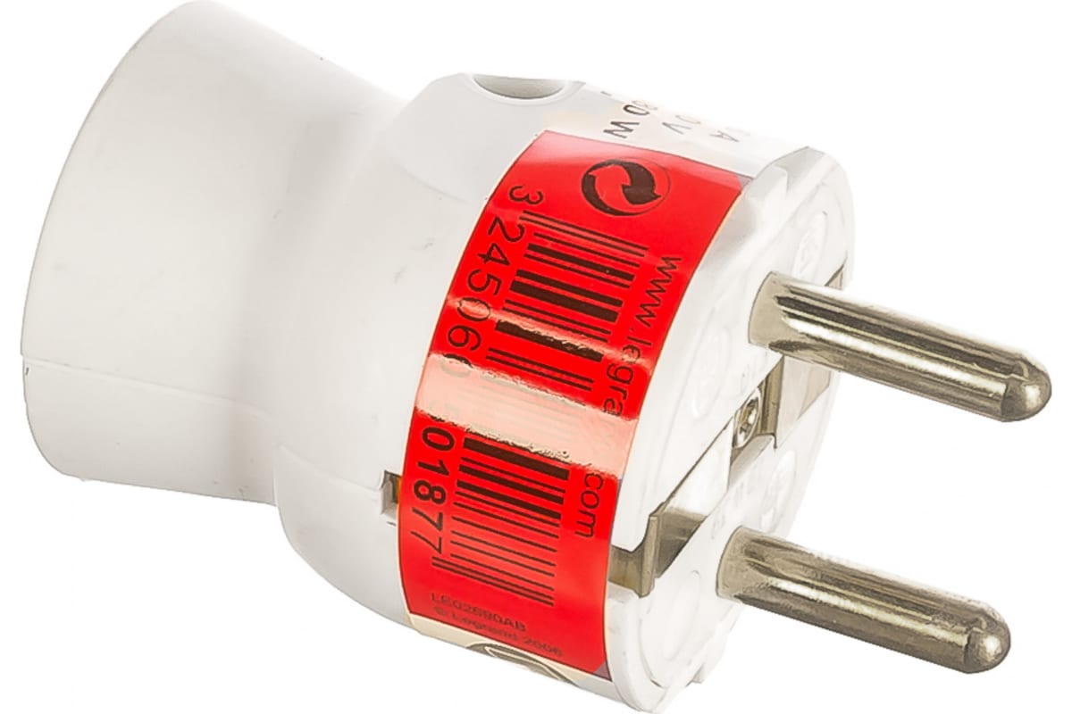 Вилка 16А 2Р+E, прямой каб. ввод, пластик, белый Legrand