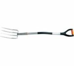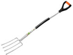 Облегченные садовые вилы Центроинструмент Акапулько 0839 оснащены лезвием, выполненным из нержавеющей стали. Черенок, изготовленный из алюминиевого сплава, оснащен специальной ручкой для удобства работы. Двухкомпонентная пластиковая V-образная рукоятка с резиновым покрытием.