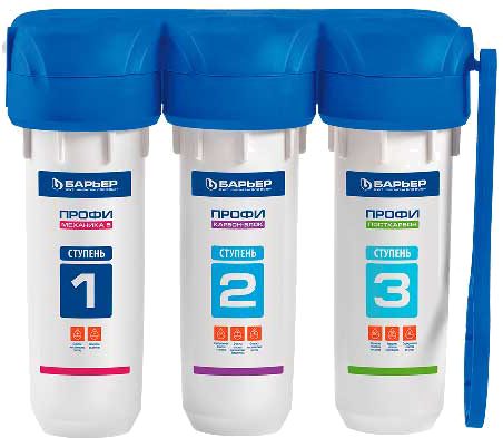 Фильтр проточный многоступенчатый БАРЬЕР Профи Standart (исп.3) надежно защищает от крупных механических частиц, активного хлора, ионов тяжелых и токсических металлов. Устраняет неприятные запахи и привкусы воды. Устраняет неприятные запахи и привкусы воды.