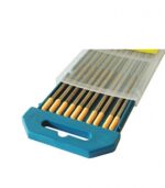 Вольфрамовые электроды WL 15 – электроды с добавкой оксида лантана универсальные, применяются почти во всех областях сварки DC и AC.Главное применение они находят при сварке не- и высоколегированных сталей как и сплавов алюминия, никеля, меди и магнезия. Используются при микроплазменной сварке. Благодаря хорошим свойствам поджига идеально подходят для автоматической сварки. Цветная маркировка: WL 15 = золотой.