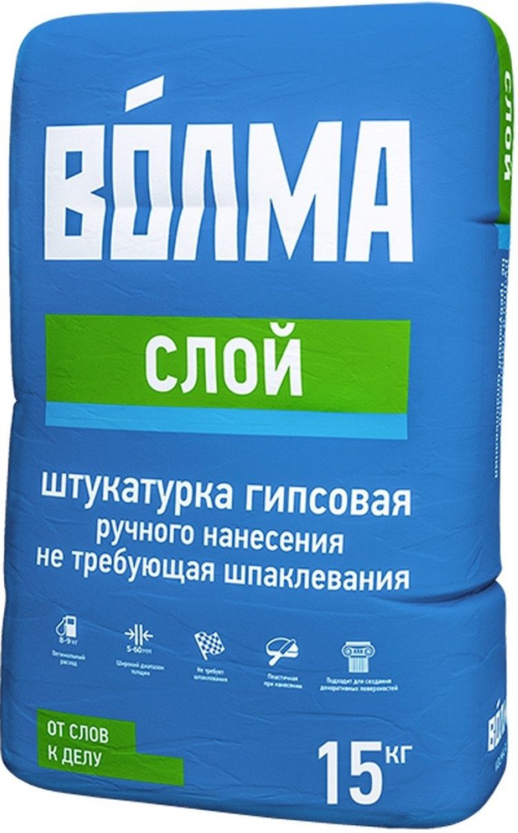 Штукатурка гипсовая ВОЛМА Слой под окраску 15 кг предназначена для выравнивания стен и потолков под оклейку обоями, покраску, облицовку керамической плиткой. При соблюдении технологии применения, дает глянцевую поверхность, не требующую дополнительного шпаклевания.