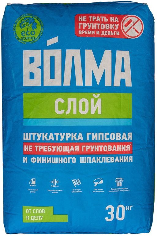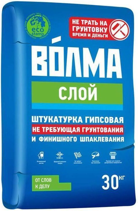 Штукатурка гипсовая ВОЛМА Слой под окраску 30 кг предназначена для выравнивания стен и потолков под оклейку обоями, покраску, облицовку керамической плиткой. При соблюдении технологии применения, дает глянцевую поверхность, не требующую дополнительного шпаклевания.