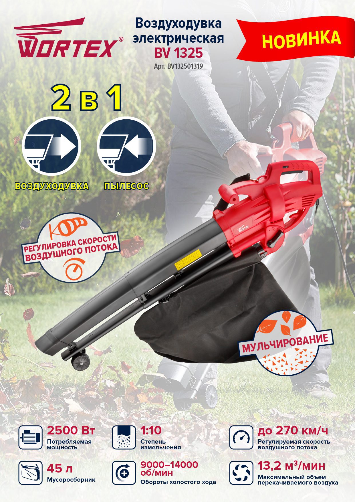 Воздуходувка-пылесос электрическая WORTEX BV 1325 (BV132501319) купить в сети строительных магазинов Мастак