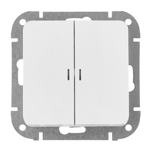 Выключатель двухклавишный cкрытый с подсветкой BYLECTRICA Astrum белый (С5 10-3508) предназначен для использования в бытовых электрических сетях переменного электрического тока частотой 50 Гц с номинальным напряжением 220 … 250 В. Сечение присоединяемых проводников от 1,0 до 2,5 мм². Климатическое исполнение УХЛ4.