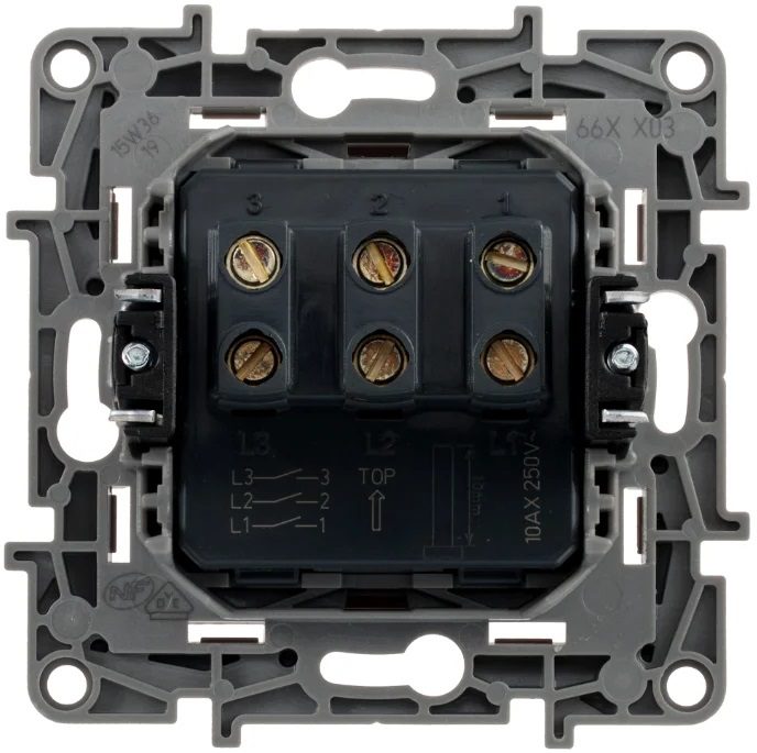 Выключатель трехклавишный скрытый LEGRAND Etika белый (6 2213) используется в стандартных электросетях переменного тока с частотой 50 Гц.