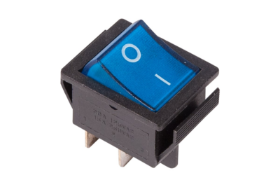Выключатель клавишный 250V 16А (4с) ON-OFF синий с подсветкой (RWB-502, SC-767, IRS-201-1) предназначен для коммутации электрических цепей переменного тока напряжением до 250В. Клавишные (Рокерные) выключатели применяются в качестве комплектующих изделий различного электрооборудования (в сетевых фильтрах и удлинителях, аудио-оборудовании, блоках питания, электроустановках на различных производствах и многих других местах). Такой клавишный переключатель имеет два положения. Принцип действия основан на перемещении клавиши в одну из позиций. Для переключения в нужное положение требуется приложить некоторые усилия на клавишу. Монтаж осуществляется без применения винтов на плоских панелях толщиной от 0.8мм до 3мм. Подключение контактов осуществляется плоской клеммой 6.6мм, либо с помощью пайки.