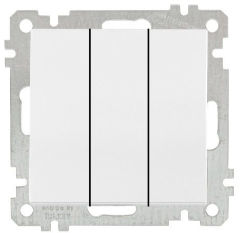 Выключатель трехклавишный скрытый MUTLUSAN Daria белый (2100 409 0201) предназначен для бытового использования в стандартных электросетях с переменным током и частотой 50 Гц.