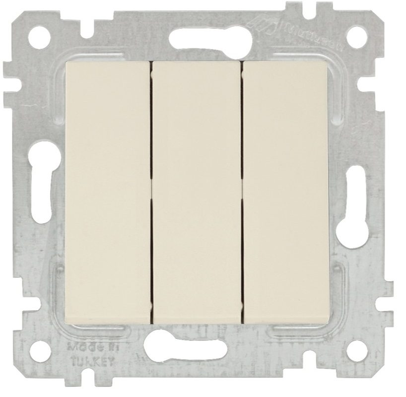Выключатель трехклавишный скрытый MUTLUSAN Rita кремовый (2200 409 0202) предназначен для бытового использования в стандартных электросетях с переменным током и частотой 50 Гц.