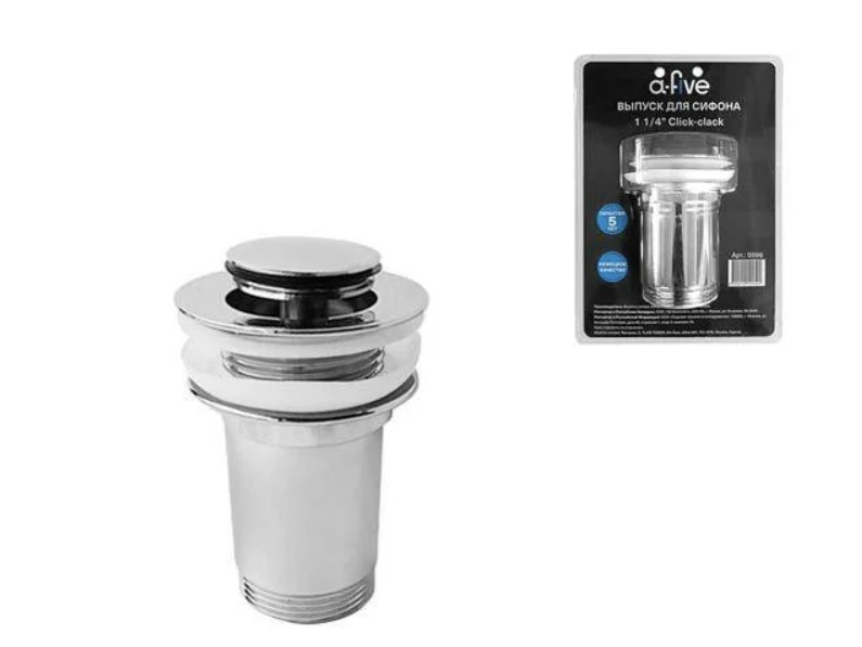 Выпуск для умывальника A-FIVE (S596) с кнопкой. Выпуск для умывальника предназначен для открытия/закрытия выпускного отверстия в умывальнике. Приводится в действие нажатием на кнопку.