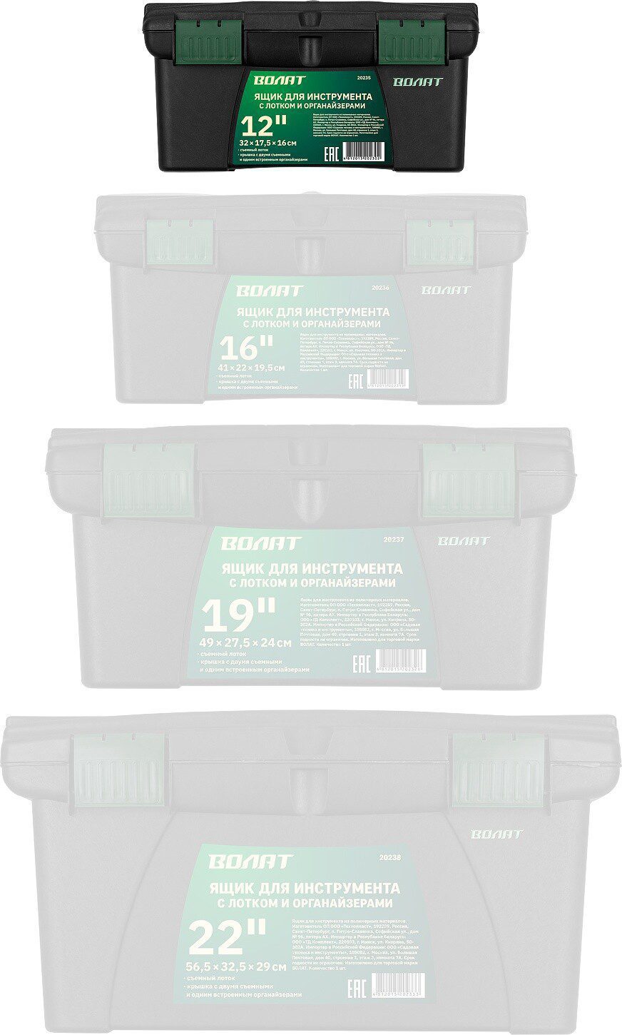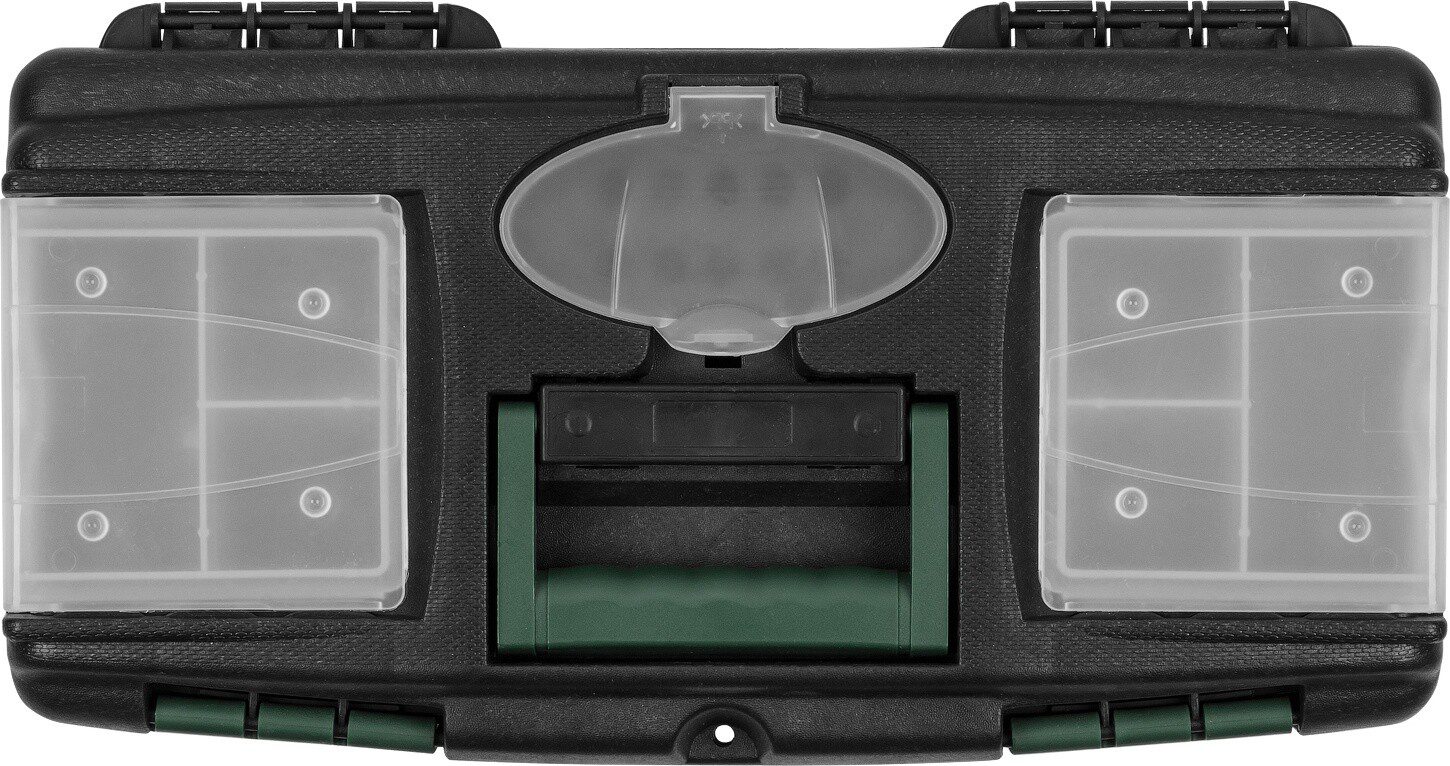 Ящик для инструмента ВОЛАТ 12″ (20235) предназначен для хранения и удобной транспортировки инструментов. Подвижный лоток и два съемных органайзера на крышке позволяют разместить необходимые инструменты и аксессуары. Ящик надежно закрывается с помощью защелок.