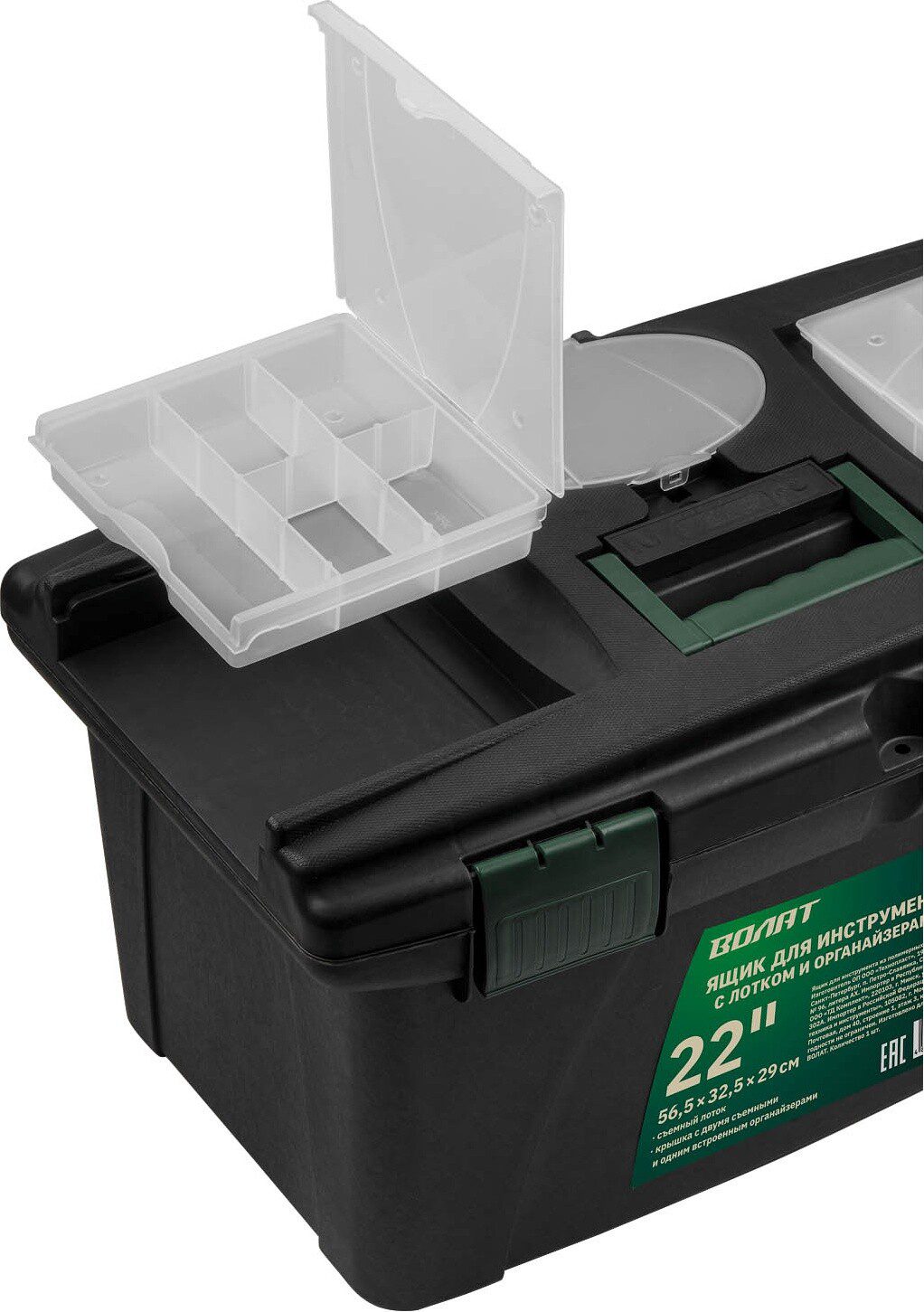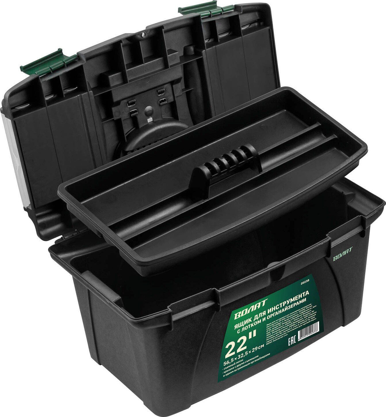 Ящик для инструмента ВОЛАТ 22″ (20238) предназначен для хранения и удобной транспортировки инструментов. Подвижный лоток и два съемных органайзера на крышке позволяют разместить необходимые инструменты и аксессуары. Ящик надежно закрывается с помощью защелок.
