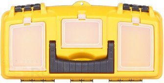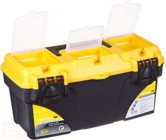 Ящик для инструмента пластмассовый ТИТАН 41х21,5х19,7 см (16″) с секциями (М2935) предназначен для хранения и транспортировки инструмента. Изготавливается из прочного пластика. Конструкция оснащена лотком для малогабаритного ручного инструмента. Для хранения крепежа и мелких деталей в крышку вмонтированы три органайзера с фиксированными перегородками. Складная ручка повышает удобство транспортировки. Два пластиковых замка надежно фиксируют крышку. Для увеличения сохранности содержимого на корпусе предусмотрены петли для навесного замка.